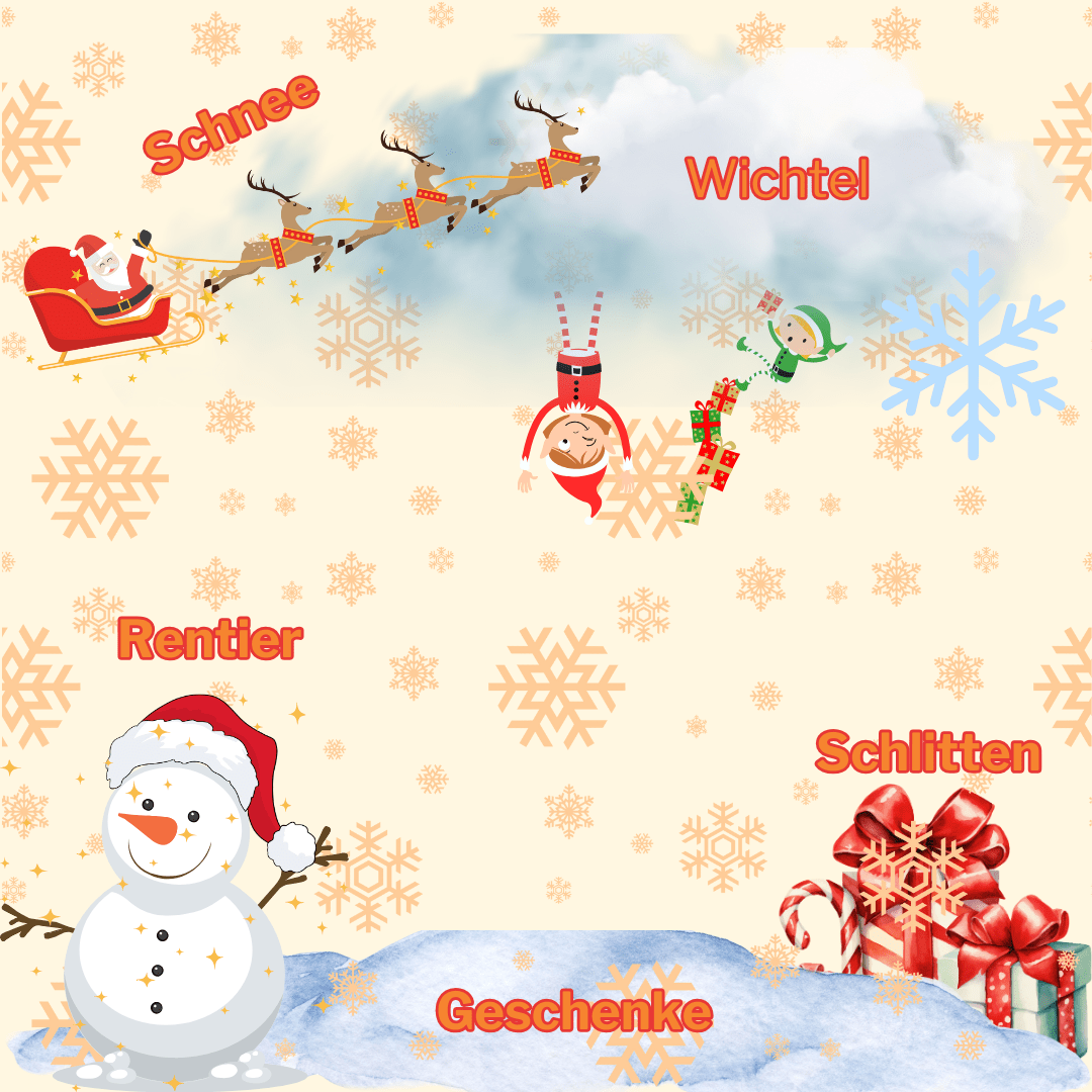 2) Le traîneau du père Noël est passé, les mots sont maintenant éparpillés. Aidez les lutins à repositionner les bons mots avec les bonnes images.