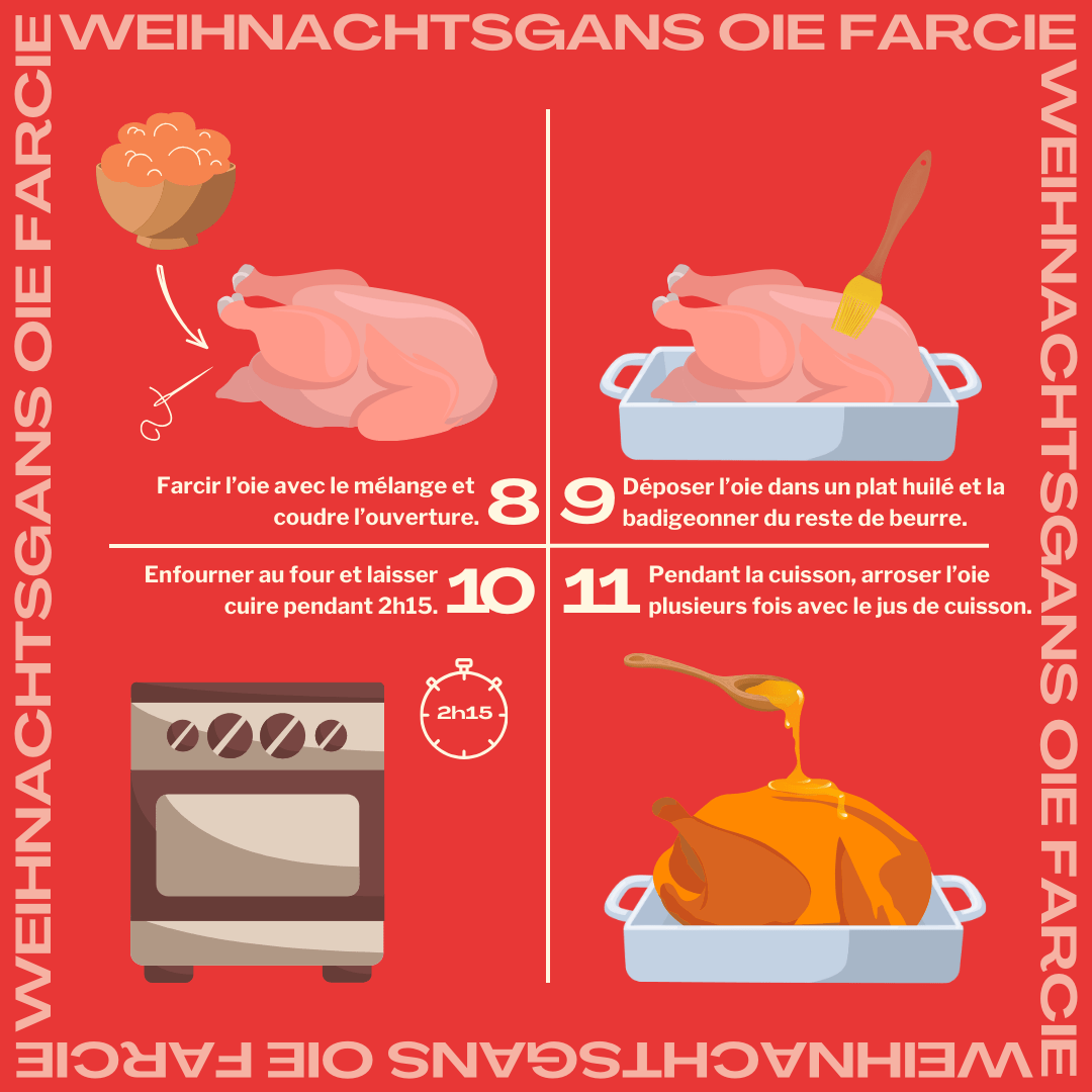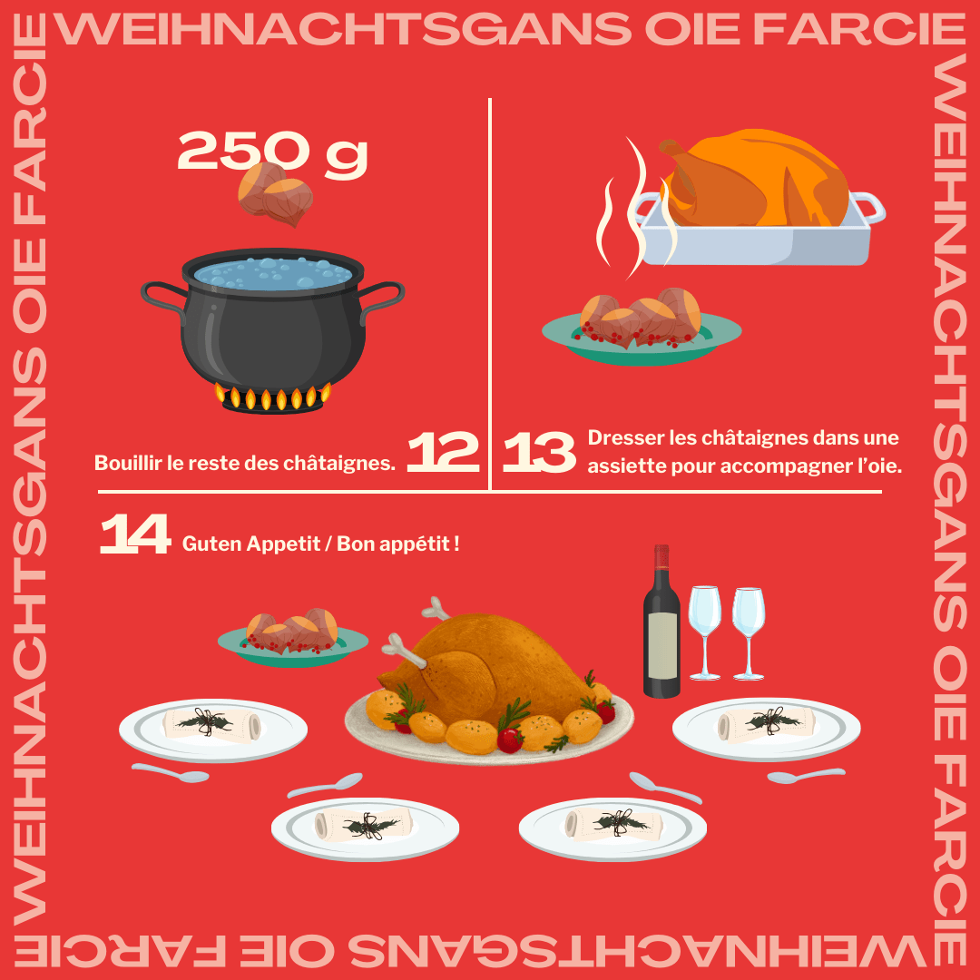 Préchauffez votre four et lavez vos mains, pour cette 11ème case, on se remet aux fourneaux ! Alexis vous propose cette semaine une tradition culinaire allemande : l’oie farcie de Noël aux châtaignes. Un plat qui saura impressionner et ravir vos convives pendant les fêtes.