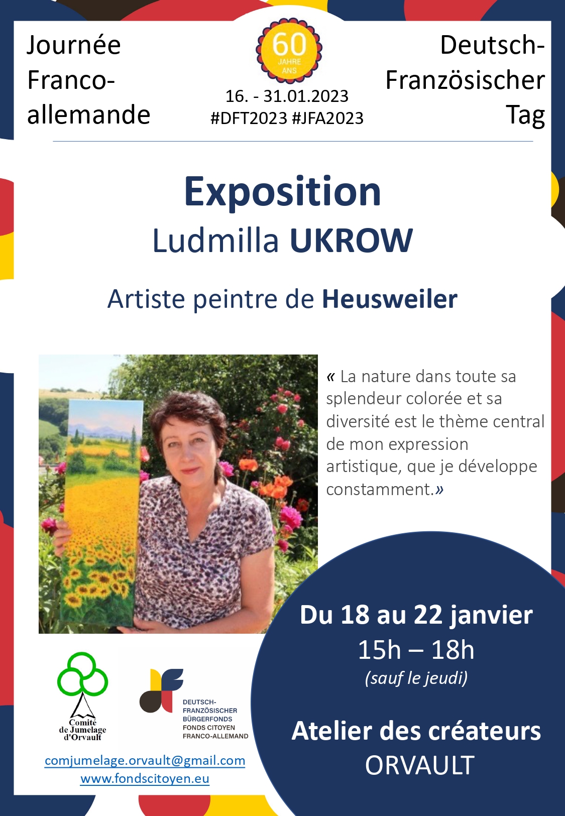 18 au 22 janvier 2023 // 15h – 18h // Exposition avec Ludmilla UKROW // Atelier des créateurs, parc du Château de la Gobinière. (Sauf le jeudi).