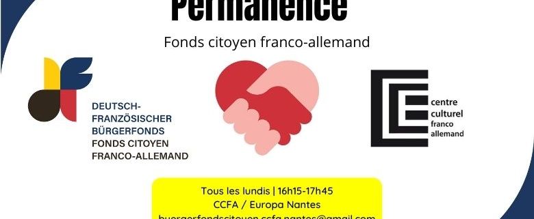 Au Centre Culturel Franco-Allemand Nantes, nous avons la chance de bénéficier d’un référent régional dans la personne de notre directeur Martin Krechting. Il vous propose une permanence tous les lundis après-midis dans les locaux d’Europa Nantes pour vous informer et vous accompagner dans vos projets que vous souhaitez soumettre pour financement au fonds citoyen.